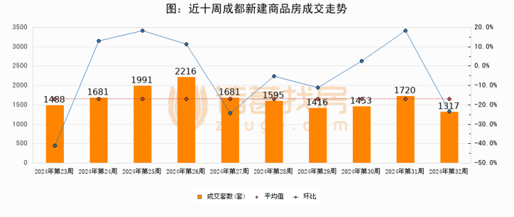 【成都成交周报】第32周新房成交1317套,二手房4124套,涨价房源1289套