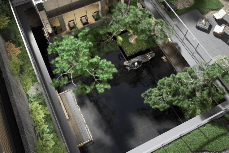 为了营造成都隐奢儫门隐逸、自在、内敛的精神格调,示范区造景选材极其苛刻,每一个精致的细节均兼具功能性与观赏性。整体景观氛围与建筑的设计手法相呼应,置身其中,绿、石、水、建筑融合共生,内与外、生活与自然的隔阂都被消解,到场宾客纷纷对眼前美景表示赞许。