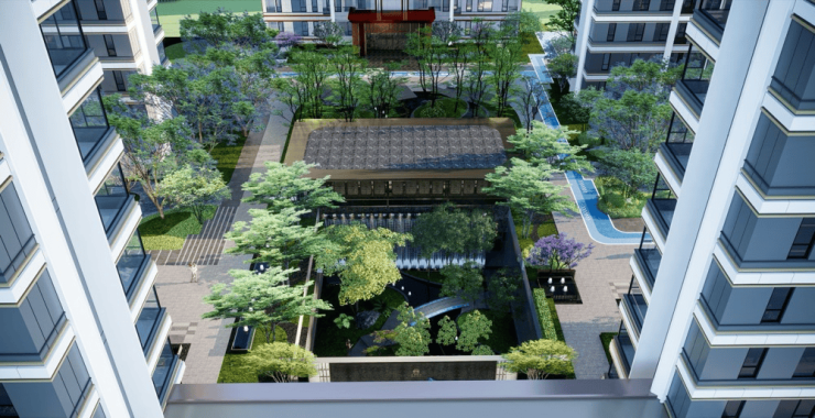 项目以无界森系居住理念打造自然与艺术相融合的度假感社区,让定制的园景渗透进生活。