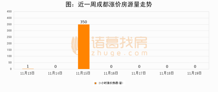 根据诸葛找房数据显示,成都24小时涨价房源量为0套,较11月18日持平。