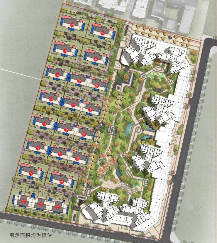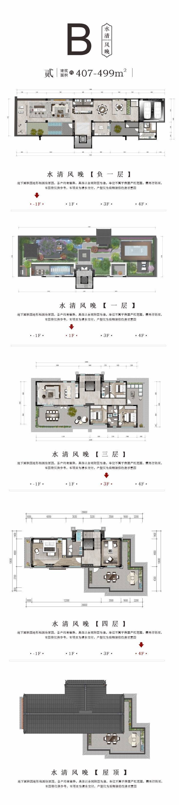 下叠户型建面约366㎡—485㎡,最大花园建面约300㎡,南面入户