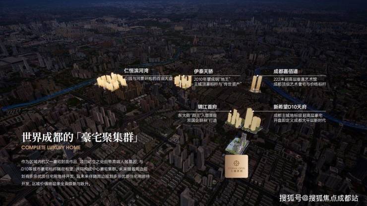 东大街高端居住版图已然清晰,天府 D10、嘉佰道、锦江首府等顶豪项目成型,向东更有伊泰天骄、仁恒滨河湾等品质住区筑牢基底,多个项目连片形成完整顶级居住带。