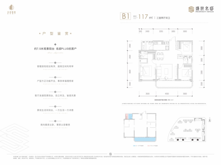 B1户型 117㎡三房:科学动线规划,双卫配置,满足刚改需求