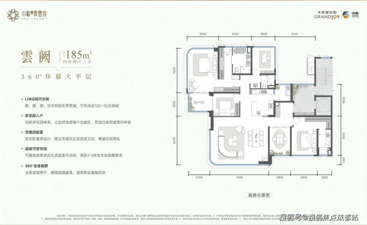 建面约 185㎡ 四房三卫(总价约 600 万起)