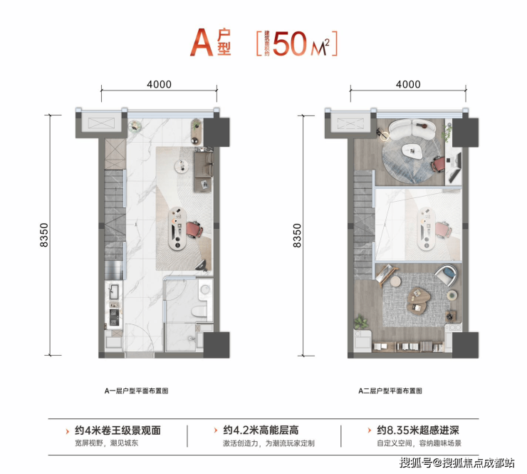 拥有约4米的“卷王级”景观面,带来宽屏视野,让您尽情潮见城东美景;阔尺层高设计,充分激活创造力,专为潮流玩家量身定制;约8.35米的超感进深,可让您自由自定义空间,轻松容纳各种趣味场景。B户型 [建筑面积约80㎡]