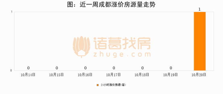 根据诸葛找房数据显示,成都24小时涨价房源量为1套,较10月19日增加1套,环比上涨0%。与此同时,涨价房源占比小幅扩大,业主信心有所提升。