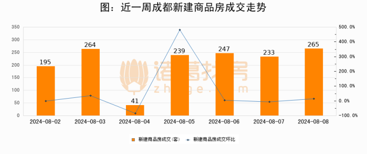 【成都成交日报】08月08日新房成交265套、二手房815套;涨价房源163套