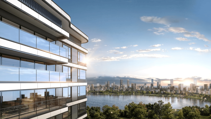 光瀑流线立面:大胆采用先锋建筑主义的曲线设计,营造“湖泊绮丽、浮光跃金”的视觉震撼