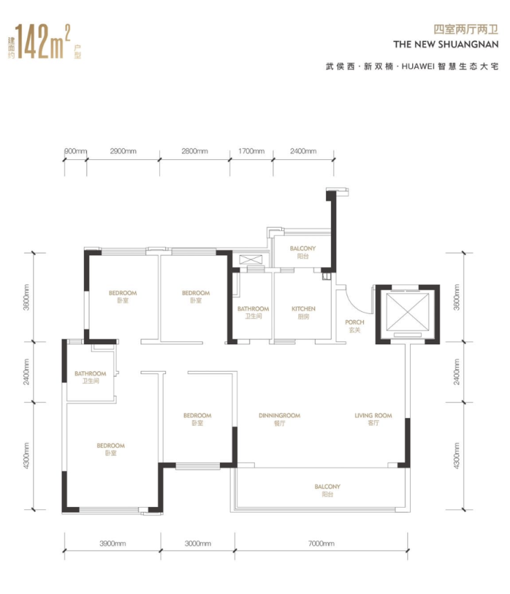 142平稀缺品质户型,套四双卫,双面采光,户户楼王,双重景观。