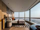 超镜体映景立面,随角度的变换,流映自然四季与超塔的视觉艺术。以欣赏者视角为设计语言,锻造香槟金铝板,镶边轻奢金属线条,米灰色仿石漆、落地窗、大面宽的艺术界面,塑造蓝灰LOW-E幕墙的流线美学,契合高窗墙比,让建筑体本身成为一道风景线。
