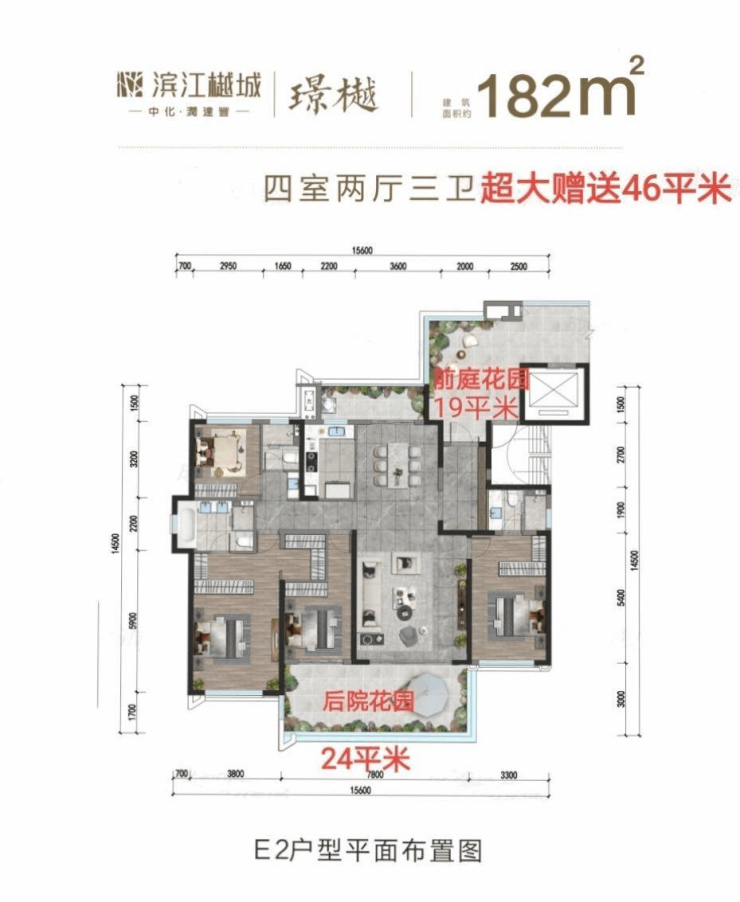 项目介绍:滨江樾城的位置在位置在锦江区2.5环以内,从滨江樾城占地面积约46亩,由四川中化锦城置业有限公司开发,容积率约4.0.绿植覆盖面积约30%,采用板塔结合的高层住宅,总层高为22层-32层,共24栋,2梯2户,目前在售156㎡-182㎡四室三卫,均带有入户花园和花园阳台,南北通透,环景窗幕采光好,双主卧套间享受私密空间。