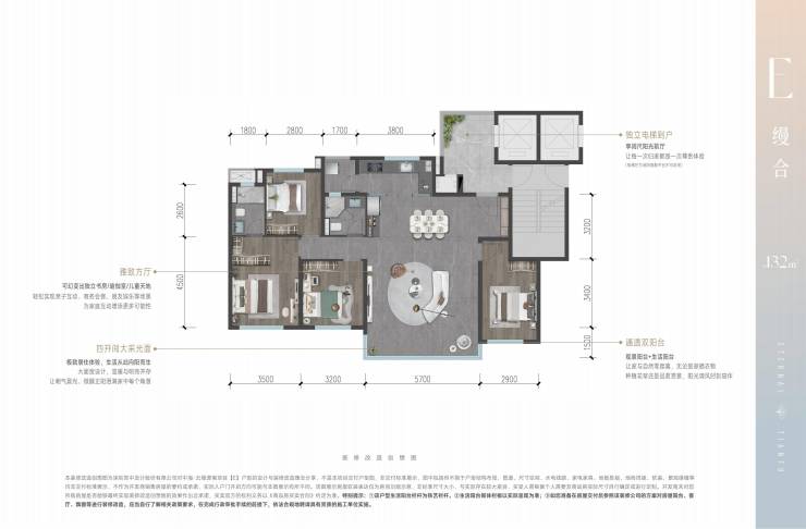 礼制玄关宽敞空间,兼得礼制与收纳E户型 建面约132㎡四室两厅两卫