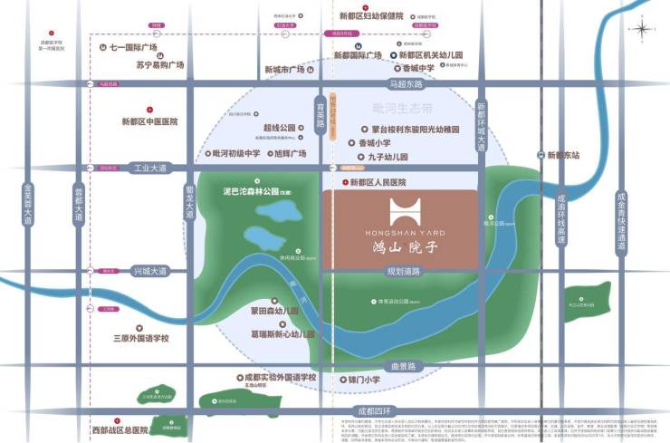 汇集一城醇熟多维配套资源,畅享城市新核进阶生活新篇。鸿山院子雄踞未来城市副中心生态核芯板块,近享地铁双线【地铁3号线、23号线海都路TOD(规划中)】、5大商圈为邻【七一国际广场、苏宁易购广场、新城市广场、超线公园商业街、旭辉广场】、多所学府林立【九子幼儿园、蒙台梭利阳光幼稚园、锦门小学、毗河初级中学、香城小学、香城中学、三原外国语学校、成都实验外国语学校(五龙山校区)等】,纵享都会繁华生活圈,划定城芯高端宜居版图。