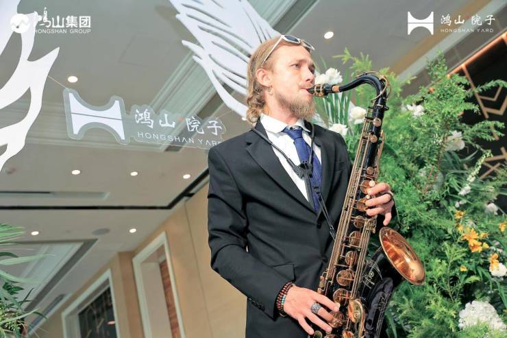 活动伊始,身着华服的礼仪模特温婉优雅,贴心指引每位到场嘉宾前往签到及拍照留念。悠扬的萨克斯乐曲舒缓轻柔,与现场布置的花艺装饰,共同营造浪漫典雅的氛围,让来宾感受到鸿山集团的满满诚意与美学修养。