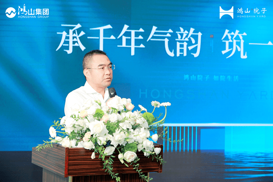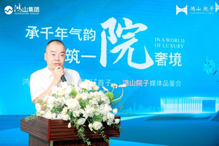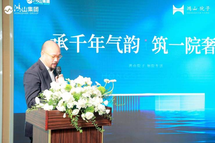 随后,媒体品鉴会在翘首等候中正式启幕,四川鸿山实业集团执行总裁陈祥柱先生上台致辞,对各位媒体朋友对于鸿山集团一直以来的关注与支持致以诚挚感谢,并与来宾分享了鸿山集团的发展历程和产业版图。陈祥柱先生表示,鸿山集团一直致力于成为美好生活缔造者,因此,在打造“TOP院子系”首子——鸿山院子时,不仅匠心规划建筑的物理属性,更关注院子栖身归心的精神属性。于一河三园【一河:毗河;三园:泥巴沱森林公园(在建中)、体育运动公园(在建中)、毗河公园(规划中)】环绕天赋盛地,以区域罕有约1.5低密容积匠造城市生态墅院,与成都千年传承的巷院情怀共鸣,匠呈成北生态院居标杆!