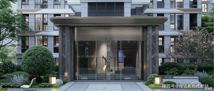 同频「豪宅设计」语言:汲取毗河映画灵感,弧形线条+鎏金冠顶,金属装饰搭配大面积LOW-E落地玻璃,打造地标级建筑立面。客厅一体化全落地窗,高颜值、更实用、省成本。