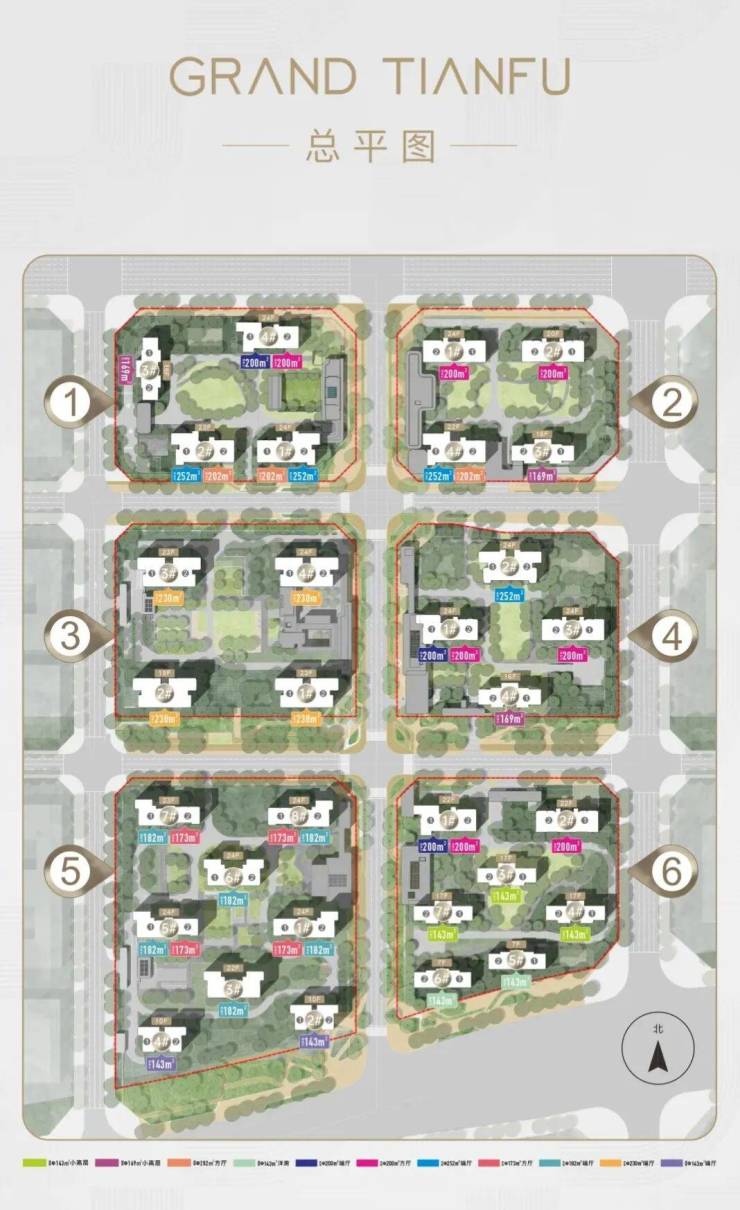 在传统产品形态、空间尺度与服务体系的升级之外,阅天府以143亩土地为画布,创新性地将地块划分为六个独立组团,实现了更具突破性的生活场景重构。这种规划模式突破了常规街区式大盘的局限——多数项目仅实现物理分割,而阅天府通过精心设计的慢行系统与景观轴线,使每个组团既保持独立个性,又形成有机整体。