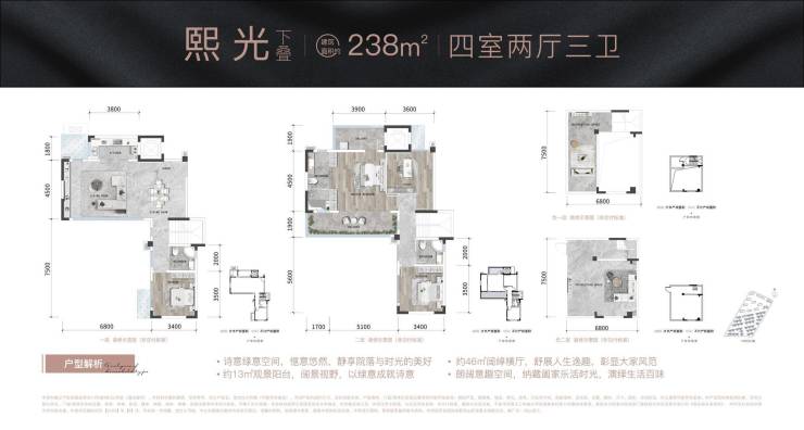 叠 拼:225㎡-238㎡四室两厅三卫清水