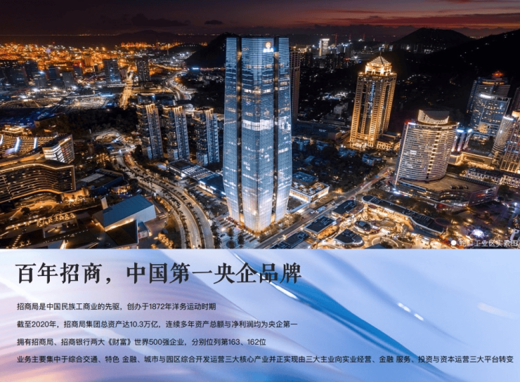 招商蛇口始创于1979年深圳特区成立前夕,深度参与并推动着改革开放发源地——深圳特区的建设与发展,先后孵化并培育了以招商银行、平安保险、中集集团、招商港口等为代表的一批知名企业。招商蛇口致力于成为“美好生活承载者”,从城市功能升级、生产方式升级、生活方式升级三个角度入手,为城市发展与产业升级提供综合性的解决方案,配套提供多元化的、覆盖客户全生命周期的产品与服务。目前已打造出六大类,覆盖教育、文化、写字楼、园区、文创、特色产城、长租公寓、住宅、酒店、综合体、商业、邮轮、健康、养老等业务板块,输出25条标杆型产品线,360度启航美好生活新方式。截至2020年12月底,招商蛇口总资产规模超7371亿元,业务覆盖全球超111个城市和地区,开发精品项目超620个,服务千万客户。