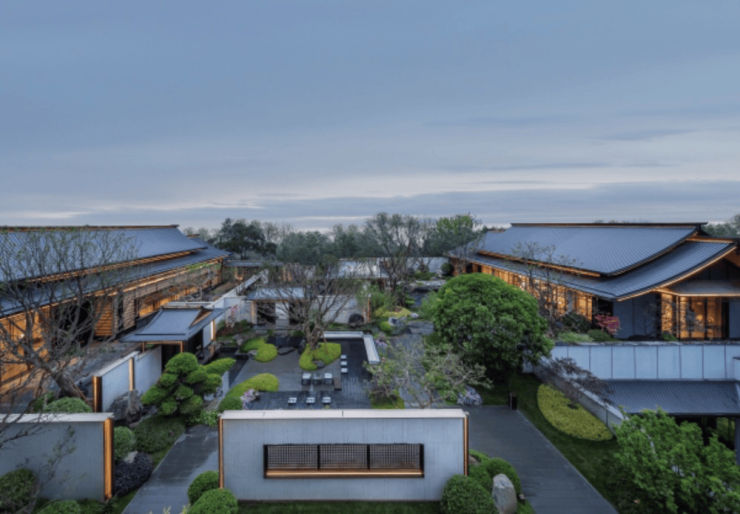 历经1825天的研究与打磨,借鉴70余幅经典宋画及120余首宋词,独创提萃出「轻闲霁金」的匠造手法,打造了一片占地约107亩的「风雅宋韵」新中式大宅,呈现出"清新儒雅,精致飘逸”的产品风格。