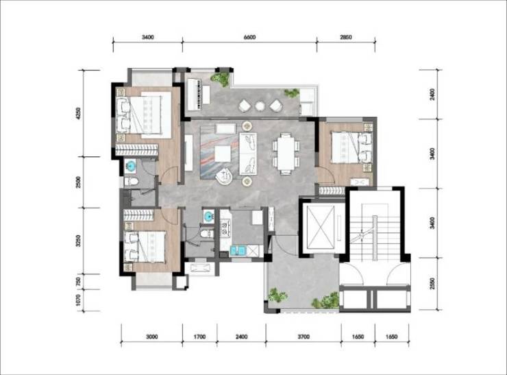 户型亮点:纯板式南北布局,采光通风效果更佳;两梯两户,独立电梯入户,从容归家;约10㎡全明私家花园门厅,花香盈门;约12.85米阔绰面宽,尽显舒居尺度;约29㎡奢阔大横厅,盛载全家欢愉时光;约12㎡L型阳台,可幻变3.5房,享空间智慧