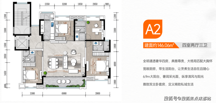 146㎡四室两厅三卫总价198-248万