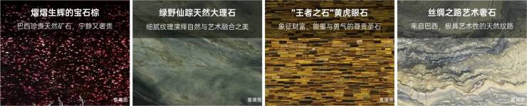 设计团队匠心甄选超15种珍贵石材匠造新川天珺,以莫奈绿曲面奢石、白玉冰裂纹石材、意大利蓝白奢石铺陈65米超长门廊,以珍宝级黄虎眼石、绿野仙踪大理石、巴西天然矿石等奢石镶嵌归家路途;所有金属铝板统一运用欧洲巴洛克艺术色彩"范戴克棕”,更以水纹铝板打造传奇冠顶,一眼即倾心。