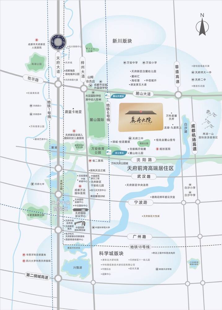 麓府大院,位于天府前湾的核心腹地,北至麓山大道、南至武汉路、西至梓州大道、东至利州大道,是高新区新川之心科技园板块和天府CBD版块(秦皇寺、兴隆湖)的驳接带,并以“公园+居住”的核心定位,三大产业核心区的环伺,成为天府新区首屈一指的“高端宜居走廊”。