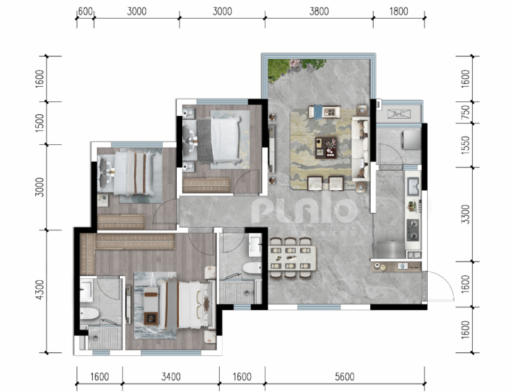 【114户型】三室两厅两卫