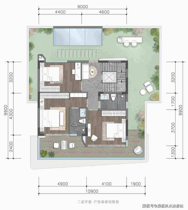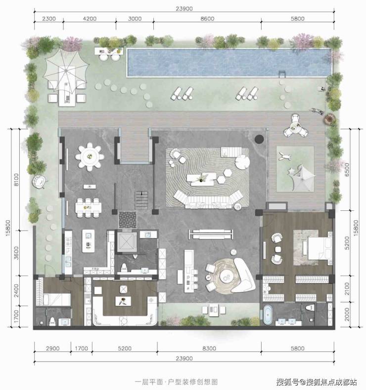3、豪宅配置拉满:独院户均占地约0.58亩,稀缺土地资源占有;独立花园+独立车位+独立泳池(预留空间自行改造);