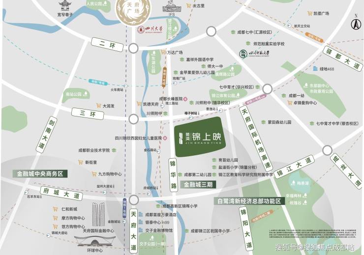 板块价值:位于锦江区,是主城五区之首。项目所在的锦江三环是主城中心正南门户,上承东湖-攀成钢,下启金融城 - 三圣乡,是传统富人区与新贵圈交界。同时,项目靠近金融城三期,接驳金融城更便捷,地铁和自驾时间控制在15分钟以内。