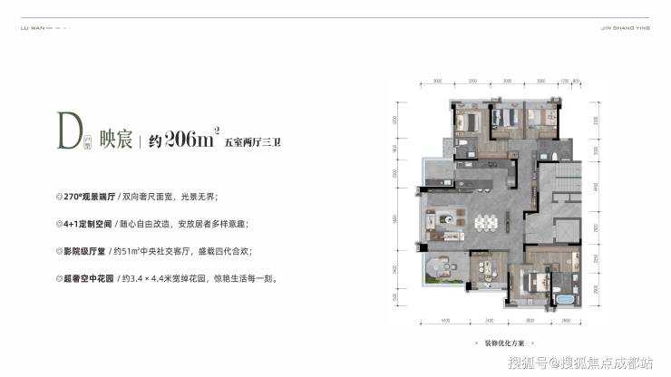双重奢感入户,双光幕阳台,双套卧,中西双厨,LDKG一体化,7.4M巨幕宽厅。