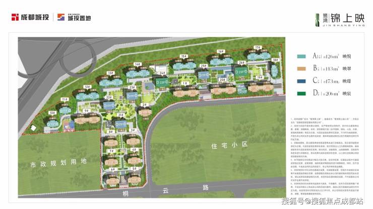 城投鹭湾锦上映位于锦江区桐云路188号,项目占地约127亩,容积率约2.0,规划26栋建筑,总户数1170户,车位1626个,绿化率30%,物业公司为城投中海,物业费3.5 元/平,交付标准为精装+三大件,交付时间预计为 2025年12月31日。