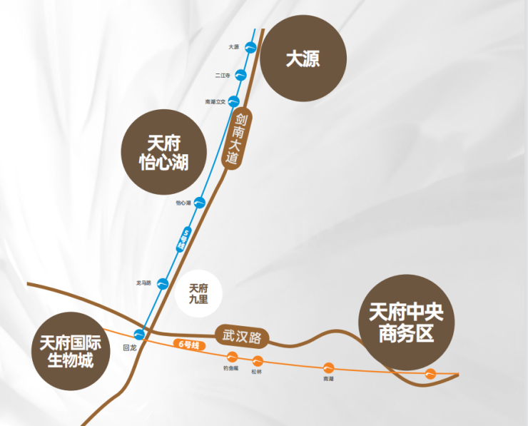 2干道:剑南大道、武汉路,通达城南各大商务中心、消费中心