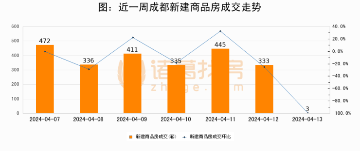 【成都成交日报】04月13日新房成交3套、二手房113套;涨价房源9套