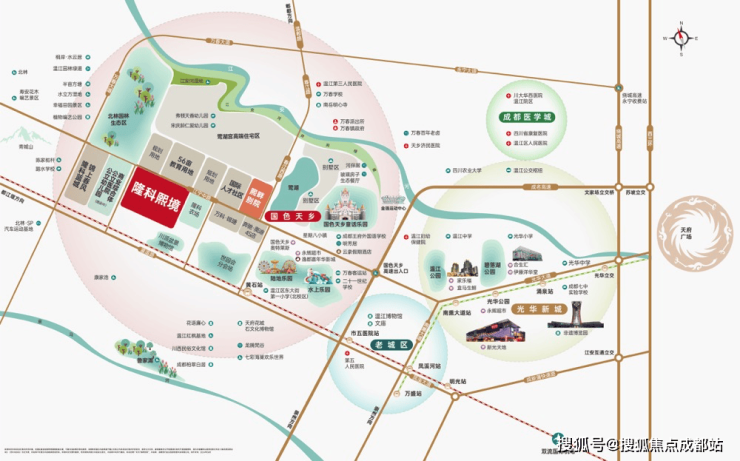 紧邻2024年成都世园会温江分会场,择址两大4A级景区中央,享20万亩花卉苗木、350余公里绿道、7000余林盘生态涵养,毗邻江安河,超享城市板块价值。