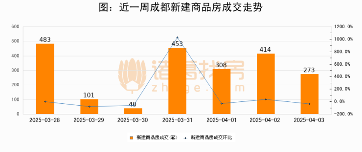 【成都成交日报】04月03日新房成交273套、二手房1050套;涨价房源65套