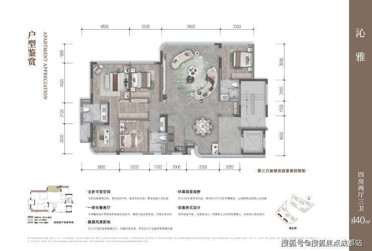 (9米开间,超宽视野,100米楼间距,可做五房,实得约180平米)