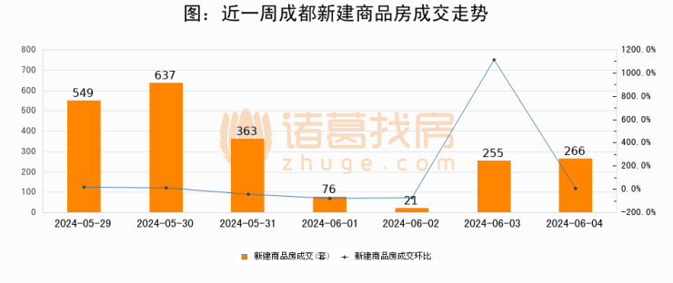 【成都成交日报】06月04日新房成交266套、二手房784套;涨价房源5套