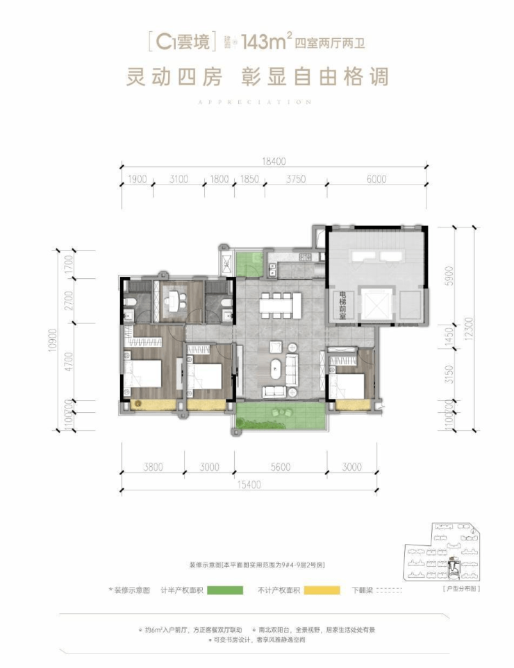 5、纯改善:108㎡—242㎡,锁定主城优质圈层,于建筑业态、项目品质、物业服务全方位改善。