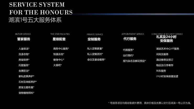 6、五大服务体系:管家服务、星级配套、定制服务、代行服务、礼宾及24小时安保服务