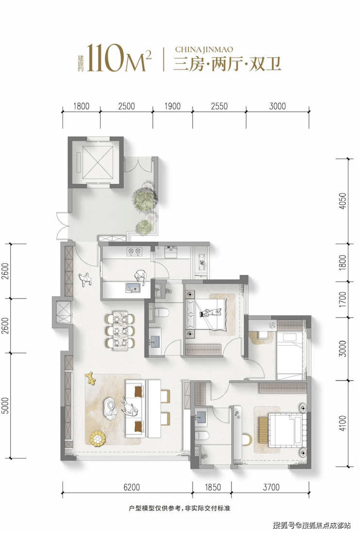 建面110㎡ 三房两厅双卫