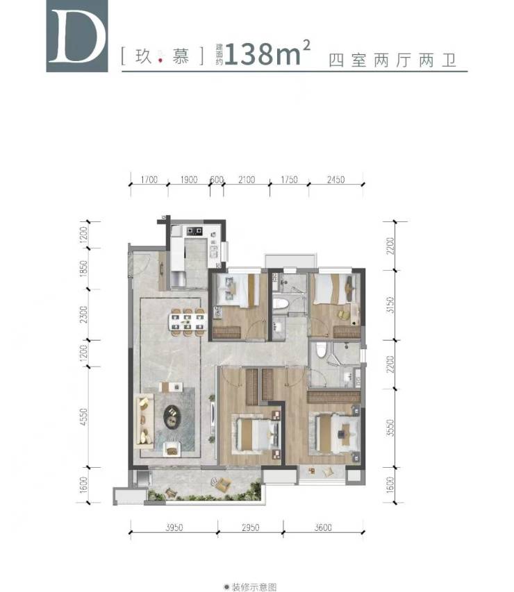 D户型:138㎡(四室两厅两卫)