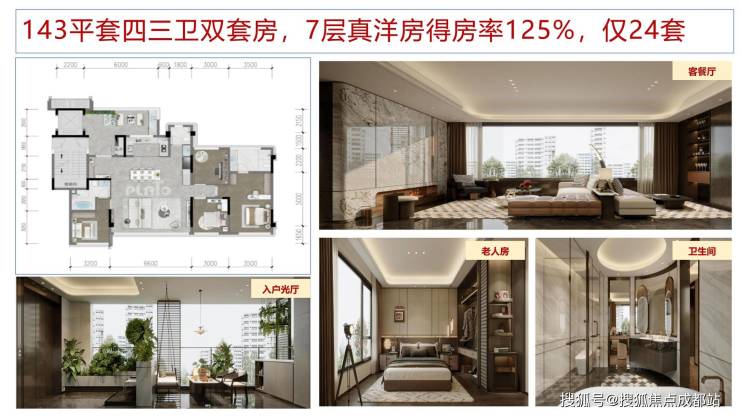 户户配置入户光厅;全系大横厅+大阳台设计;LDK一体化空间;主次卧奢适尺度保障;精研当代高端家庭生活场景所需,定制化打造人与自然强交互、人与人强交互的家庭社交型空间。