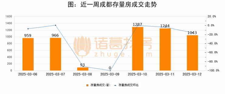 从存量房来看,2025年03月12日成都存量房单日成交1043套,比昨日减少201套,环比下降16.2%。从近一周存量房成交来看,成都存量房日均成交套数为798套,03月12日单日成交1043套,高于近一周平均水平30.7%。