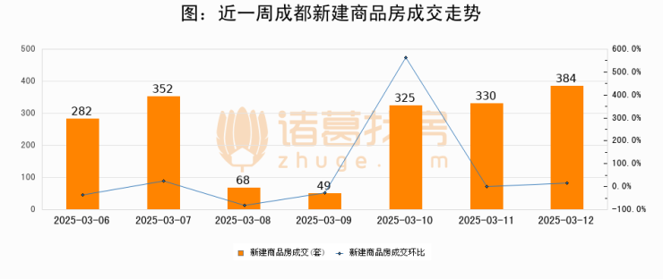 【成都成交日报】03月12日新房成交384套、二手房1043套;涨价房源83套