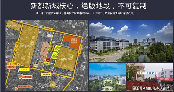【项目交通】项目构建了三横四纵的立体交通网络。三横分别为鸿运大道、新都大道和香城大道;四纵是蓉都大道、蜀龙大道、绕城大道、京昆高速。通过此交通网,向北可至青白江,往南半小时便能抵达动物园,还能连接杉板桥、建设路等核心区域商圈。【公共交通】地铁3号线为居民出行提供便利,成都医学院站距项目约600米,石油大学站约800米。而且在3号线驷马桥站可换乘地铁7号线,前锋路站可换乘地铁6号线,春熙路站可换乘地铁2号线。【商业配套】项目周边商业氛围浓厚,约2.5公里处有七一国际广场、苏宁易购、新城市购物广场,富强综合菜市距离项目西侧仅400米。【教育资源】这里拥有全龄段名校资源,构建了0 - 18岁完善的教育体系,涵盖香宝宝幼儿园、医学院附属小学、升庵中学、石油大学、医学院、音乐学院等。【医疗配套】周边医疗设施完善,有新都区妇幼保健院、新都区人民医院,成都医学院附属医院也在拟建中。【自然资源】周边自然资源丰富,15亩绿地公园已建成呈现,还有艺术观光园、香城体育公园、新都体育森林公园、潮玩公园等。