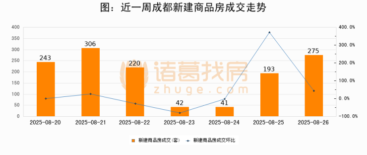 【成都成交日报】08月26日新房成交275套、二手房781套;涨价房源3套