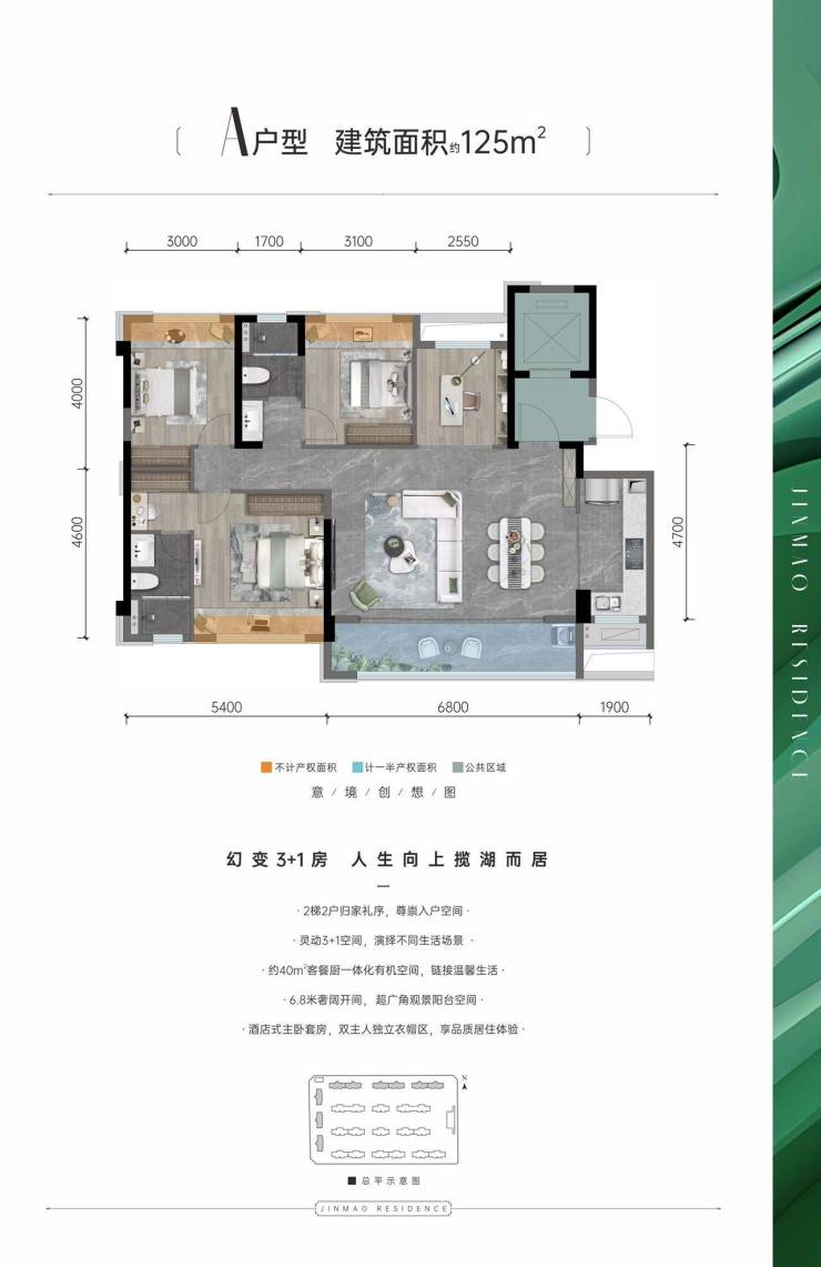 项目规划125㎡四房品质功能型户型及143㎡四房轻奢阔居型户型,满足二孩时代下不同家庭结构的全生命周期居住需求。