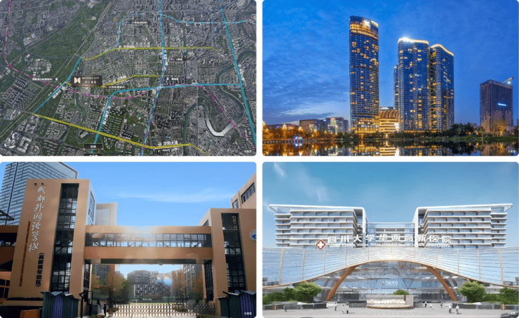 医疗:项目邻四川大学华西医院高新院区,预计2026年可投入运营。成都市第三人民医院高新院区(已批复),为每一位业主家人的健康保驾护航。